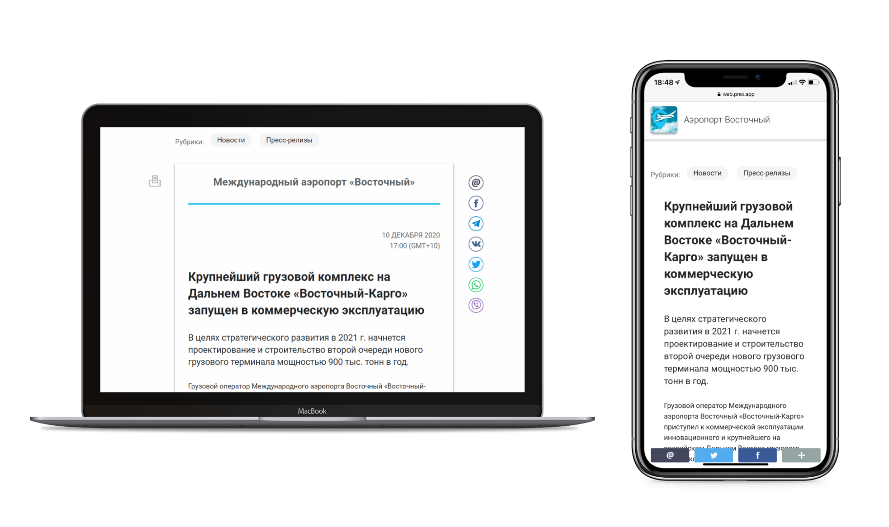 Пресс-релизы, созданные в редакторе PREX, имеют мобильно-оптимизированную верстку. Это значит, что ваш пресс-релиз будет удобно читать с любого устройства: смартфона, планшета, ноутбука, ПК. Материал автоматически адаптируется под разрешения экрана пользователя.
