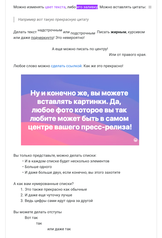 Создавайте идеально сверстанные и мобильно-оптимизированные пресс-релизы в несколько кликов